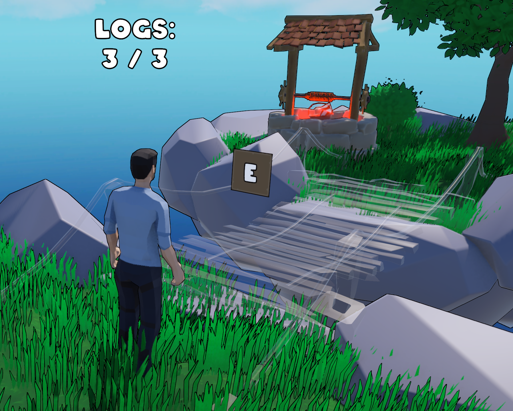 Chop Well is a game set in a solarpunk world filled with greenery. You are a regular tourist who has found himself mysteriously deserted on a beautiful green floating island, after hiring a Airship to go explore the skies. In the distance he sees the Airship floating motionlessly, with it's Al not knowing where the tourist has gone. You look around and see a firework rocket on the other small island that accompanies yours. Your goal is simple, get the firework rocket, and signal the Airship to your location using it. Around you are mutliple tree, and next to you lies an axe, you don't know how it got there, maybe from a mysterious previous desserted tourist, but you take it and get to work. In order to get across you will have to construct a bridge, Good luck, and Chop Well!
